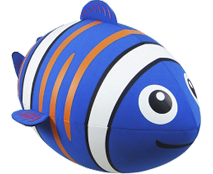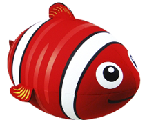 Gran balón de playa inflable, muy blando, disfrazado de pez de colores.